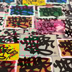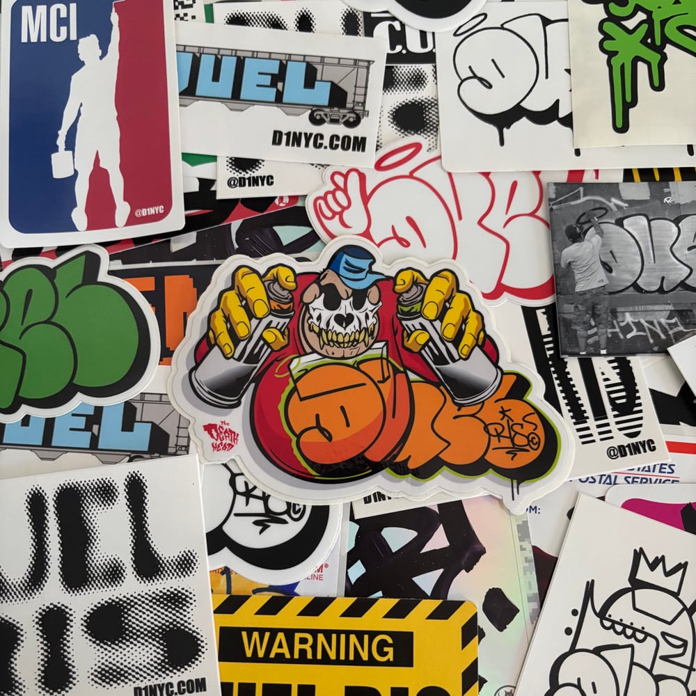 Yo!!!! We got Duel RIS sticker packs for the serious graff collector. The "Tags and Throws" pack comes with 10 stickers total, five hand done and five printed. Hand done stickers will be on assorted labels and will include a pair of throws, a moniker, and some tags along with five printed joints selected at random.